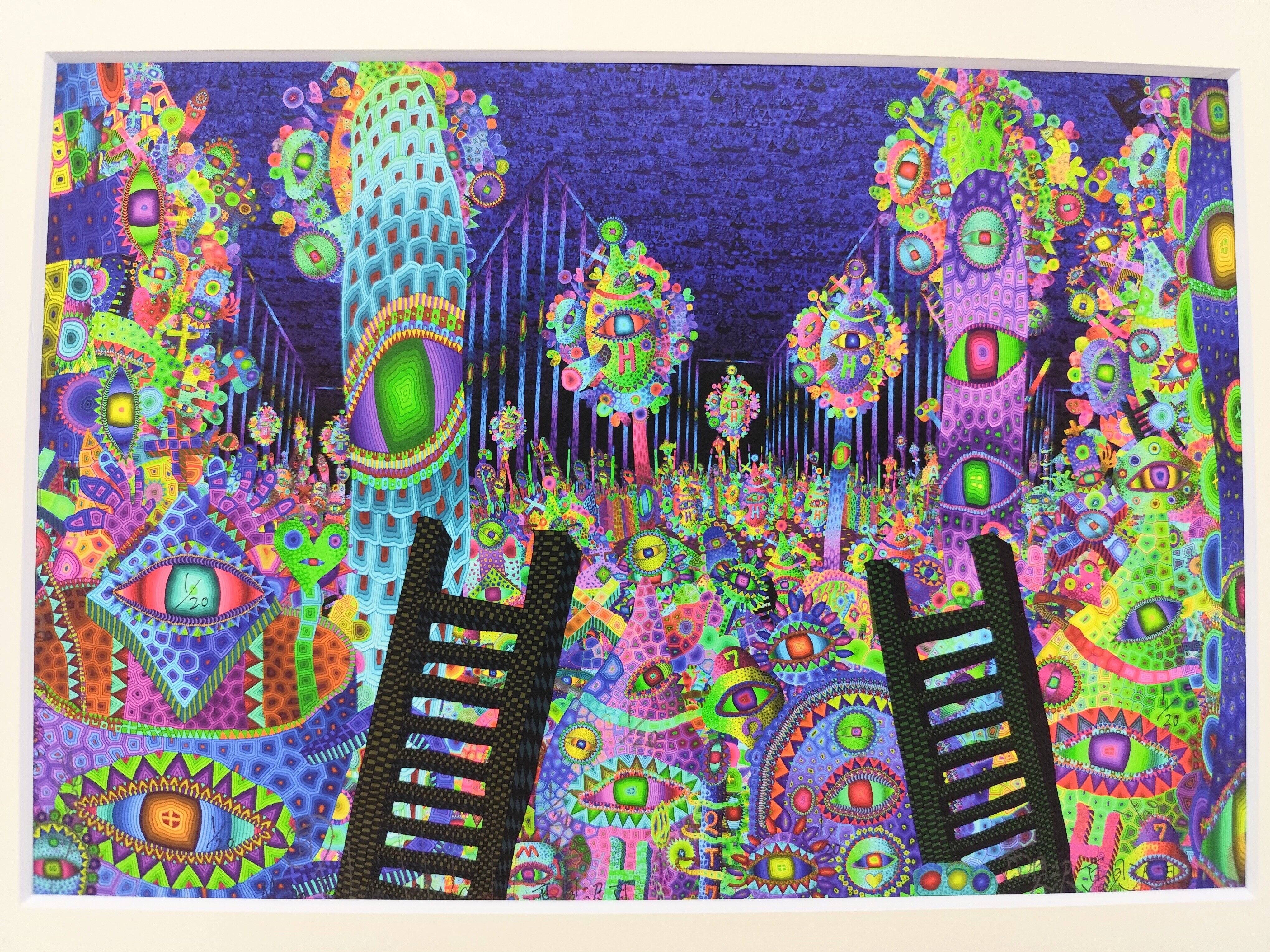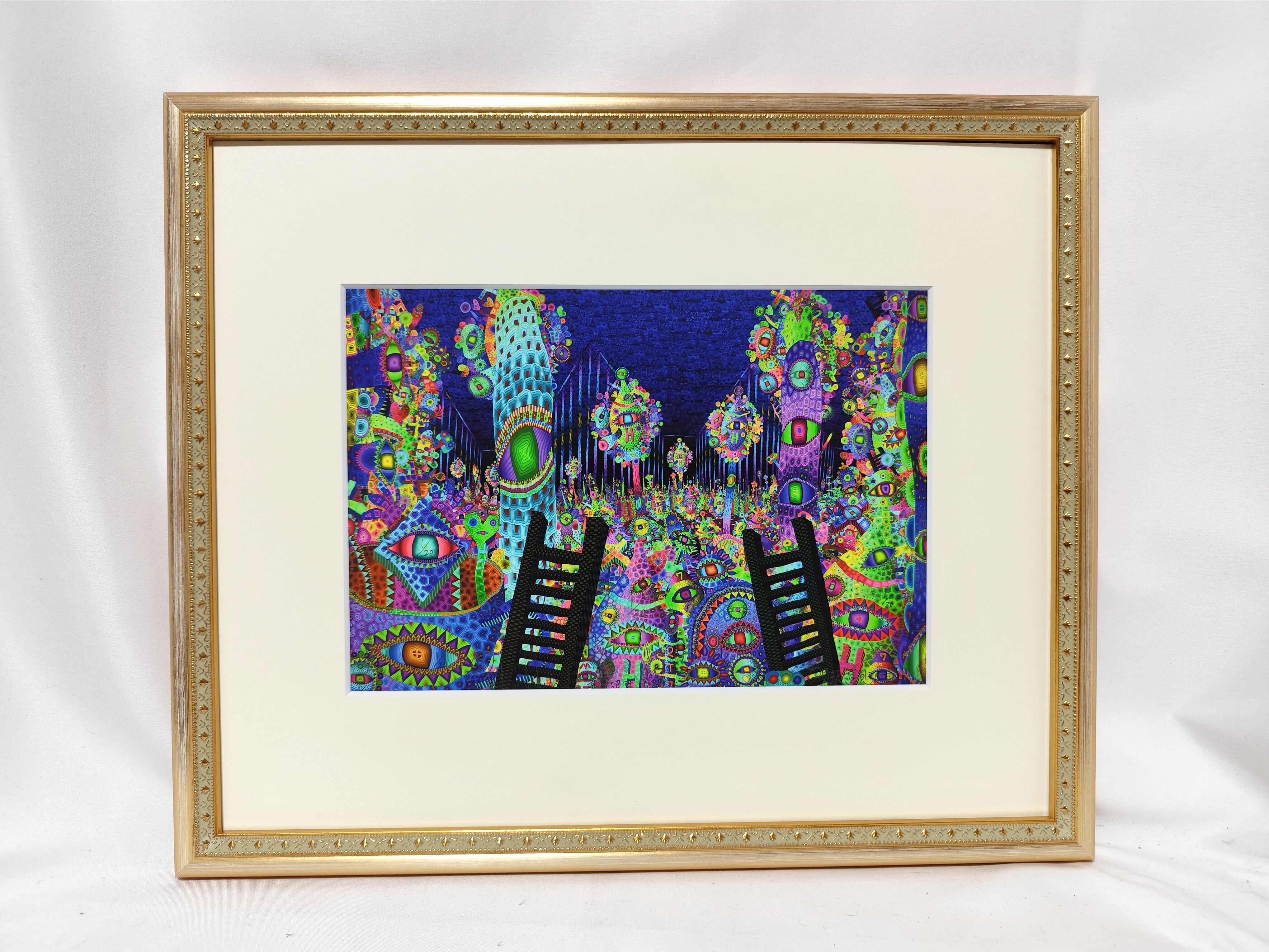 This painting was created using a special printing method called giclee printing, which uses pigment inks instead of dye inks, from a digitally drawn image. The support is paper.