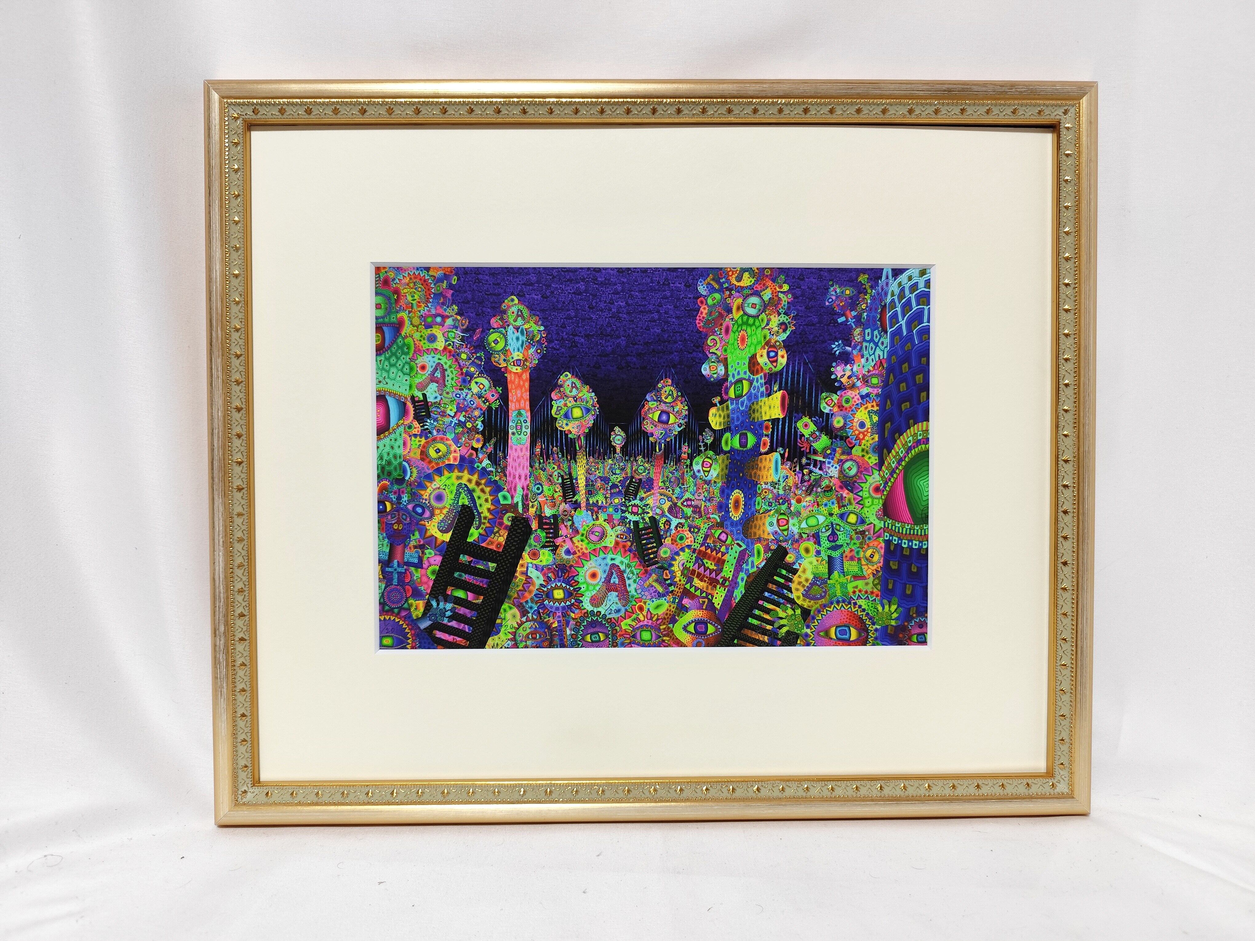 This painting was created using a special printing method called giclee printing, which uses pigment inks instead of dye inks, from a digitally drawn image. The support is paper.