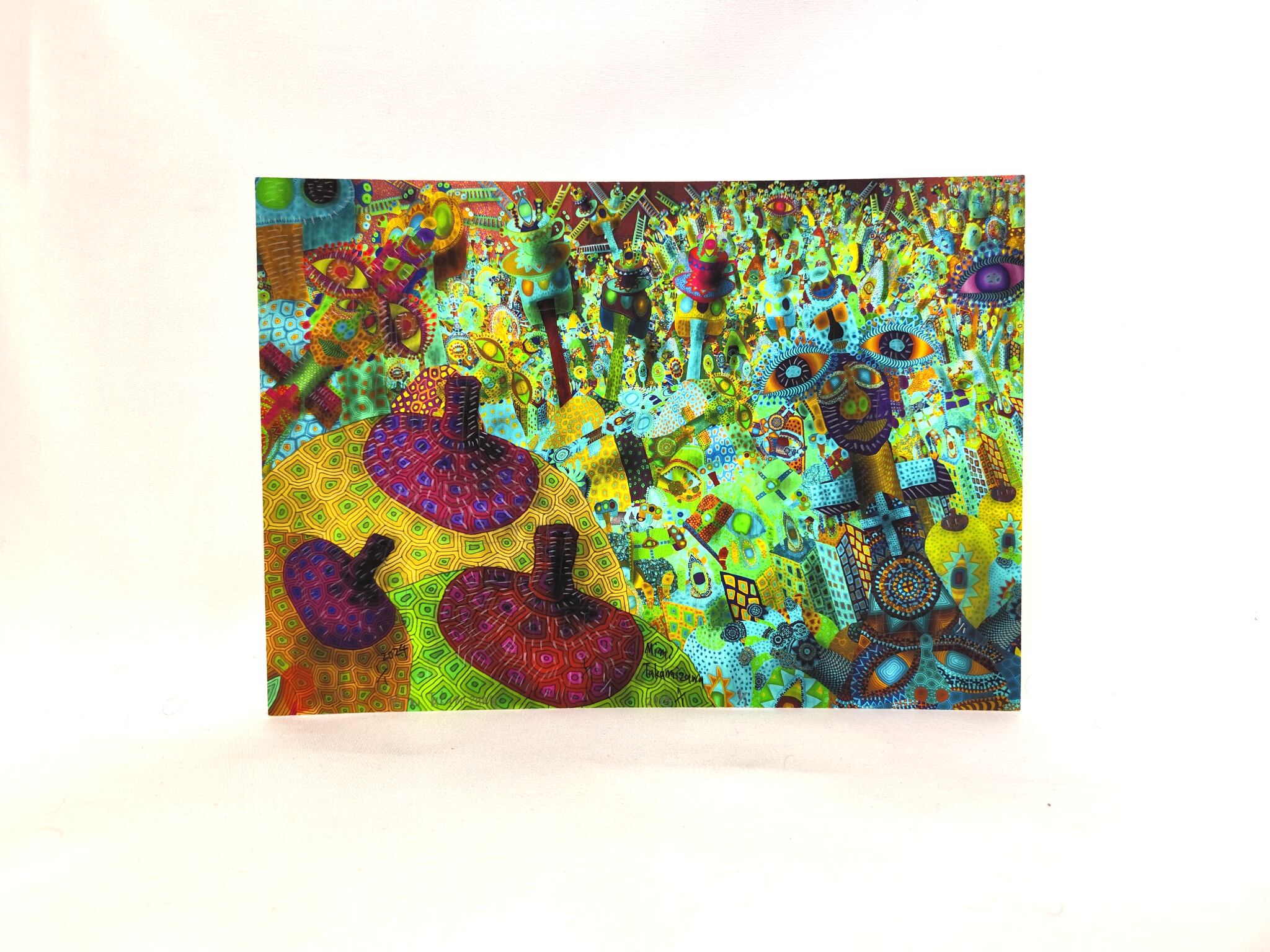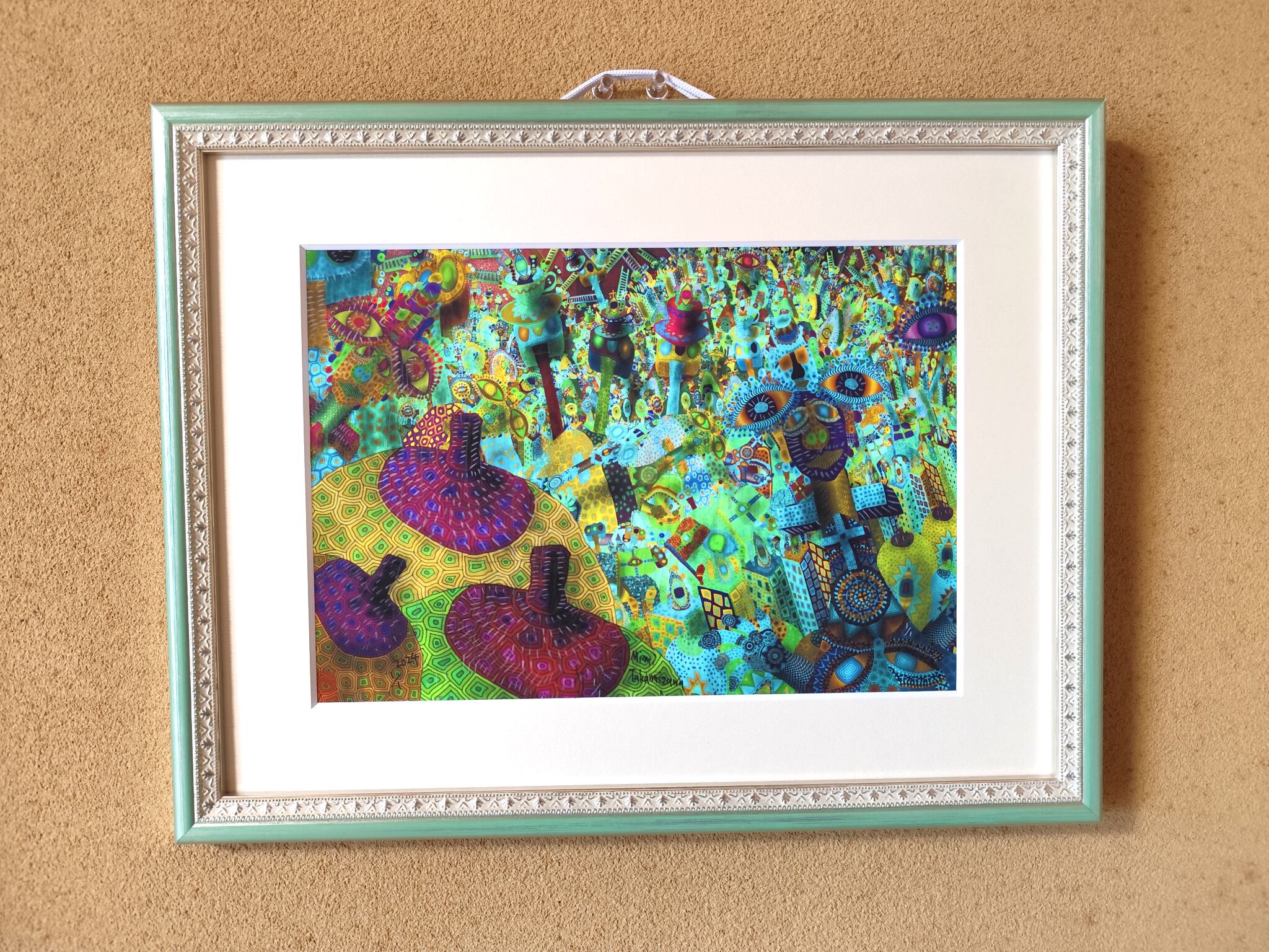 Digital drawings were printed using a special printing method called giclee printing, which uses pigment ink instead of dye ink. The support is paper.