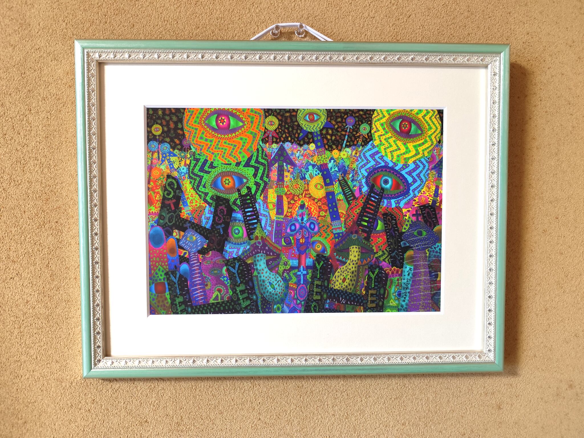 Digitally drawn, it was produced using a special printing method called giclee printing, which uses pigment ink instead of dye ink. The support is paper.